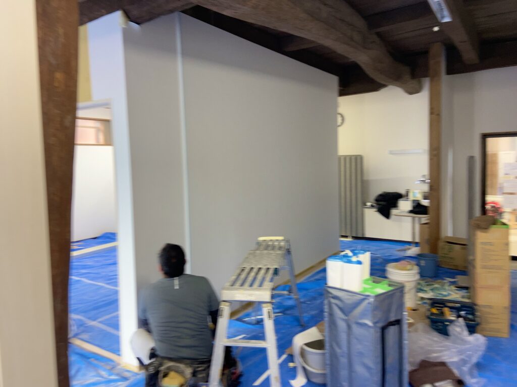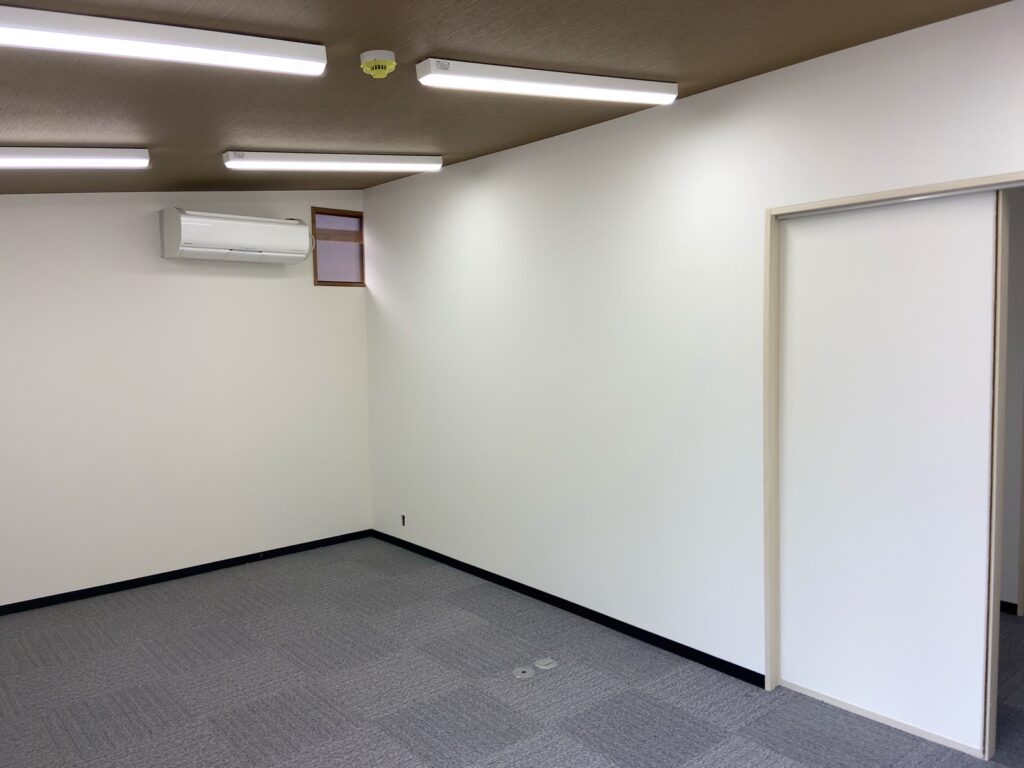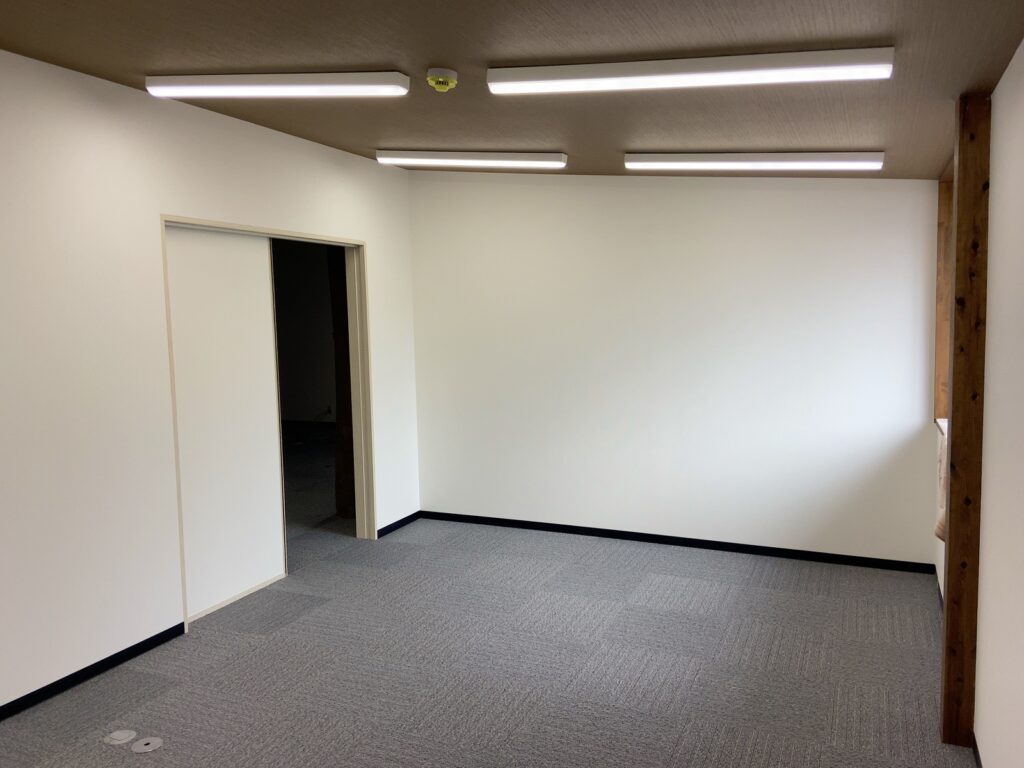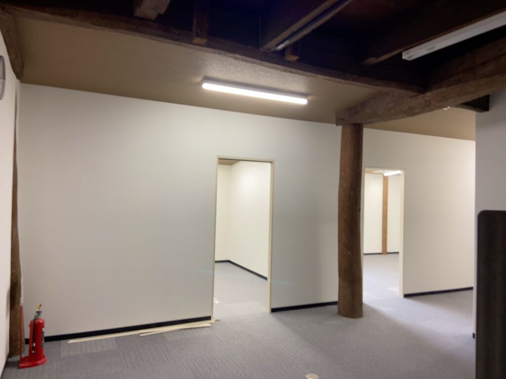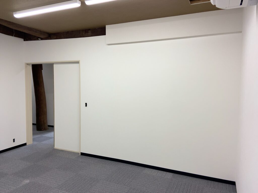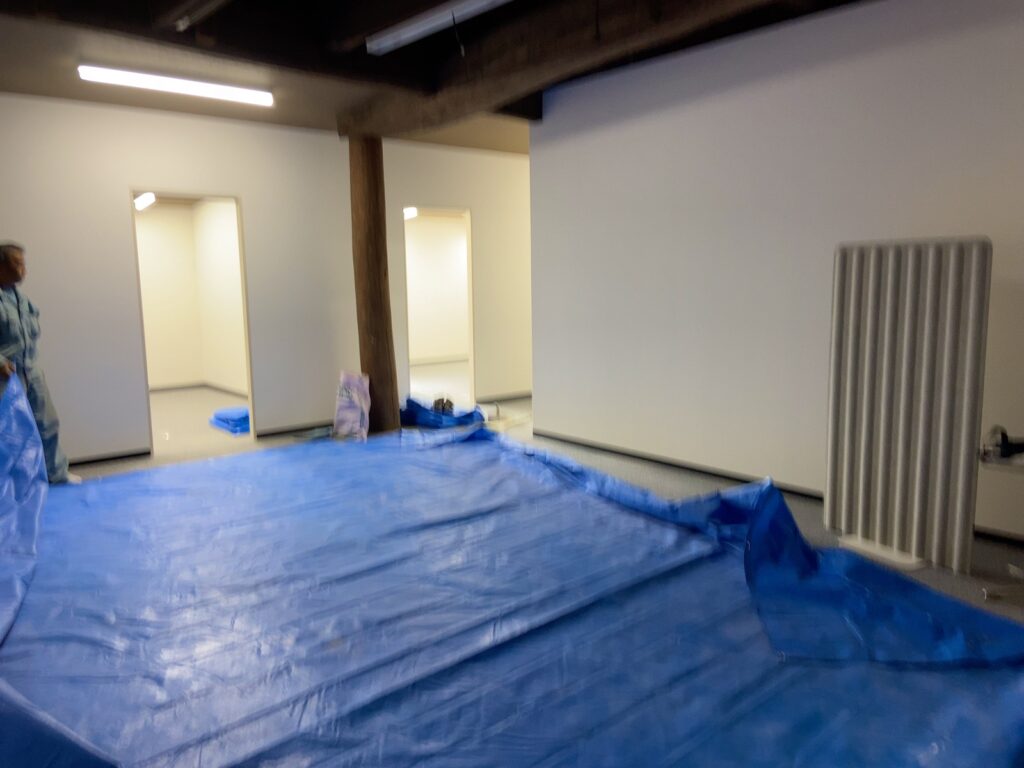 広いお部屋に間仕切壁を設置して小部屋を作ります! リフォーム 2026.03.20 広いお部屋を間仕切壁を設置して部屋を分ける工事を頼んでいただきました。 仕上げ工事のクロス張り完了したので床養生のブルーシートを片付けました。 キレイに仕上がりますように。 #改修工事 #間仕切壁