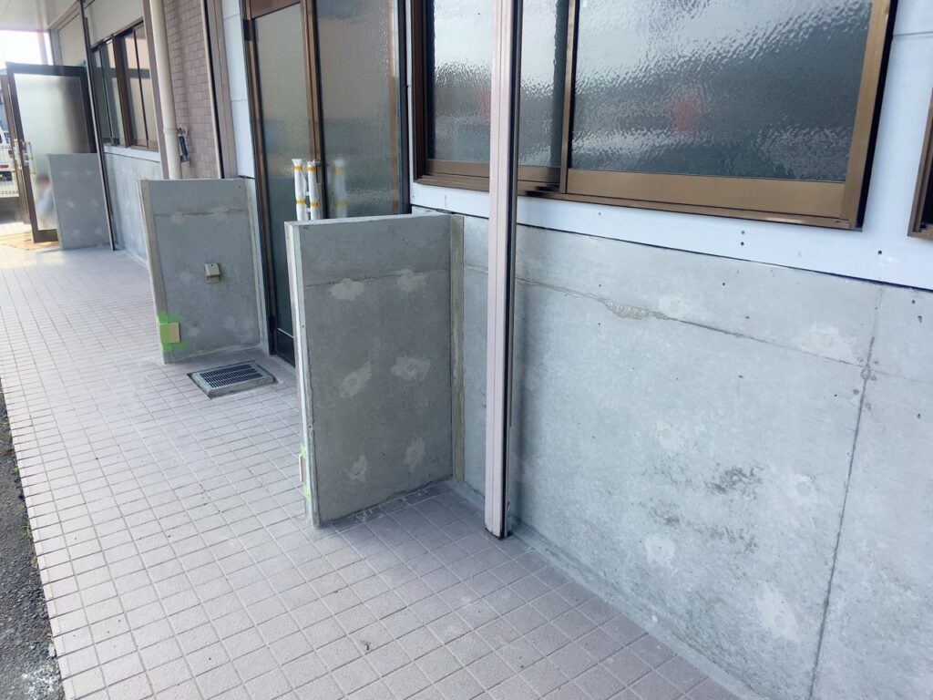 コンクリート壁と止水板で水の侵入を防ぎます。
