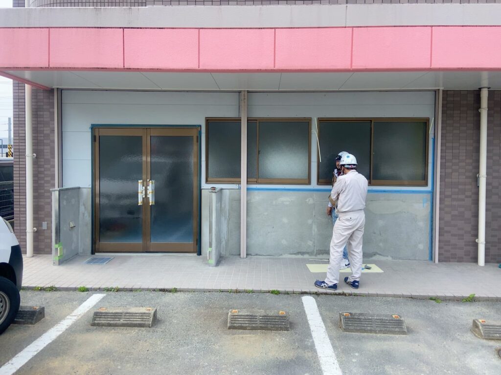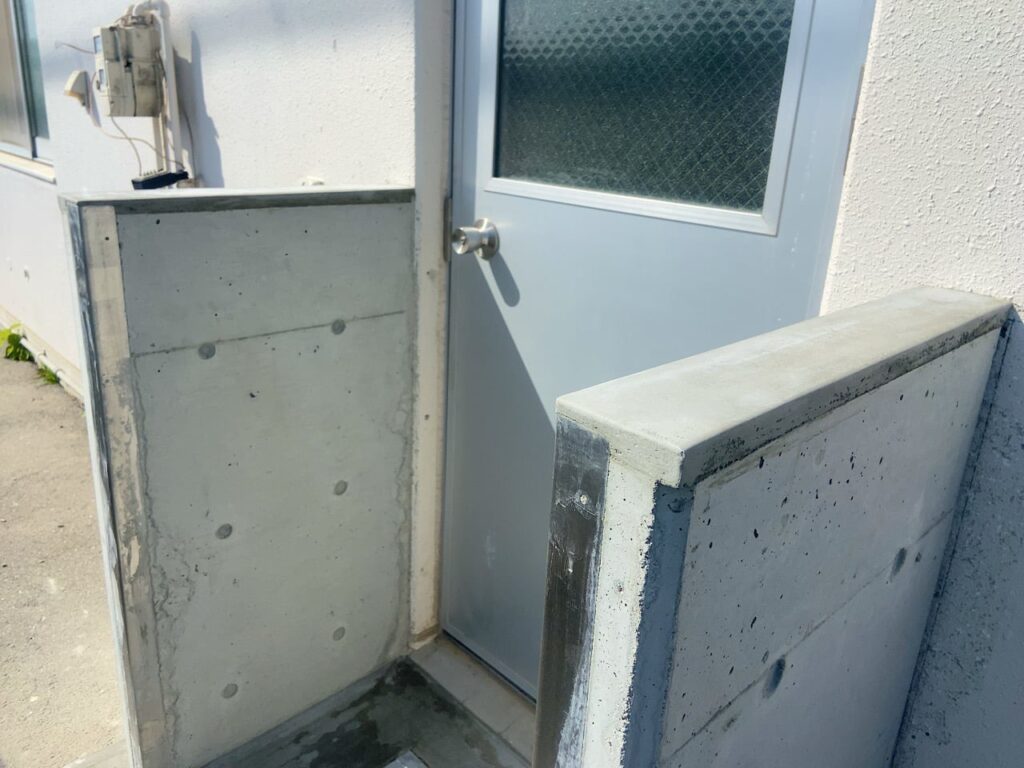 コンクリート面や駐車場の中のコンクリートブロックの壁を防水できるように左官さんに補修してもらいました。