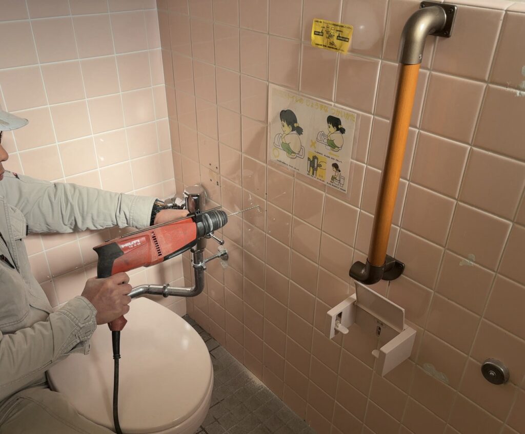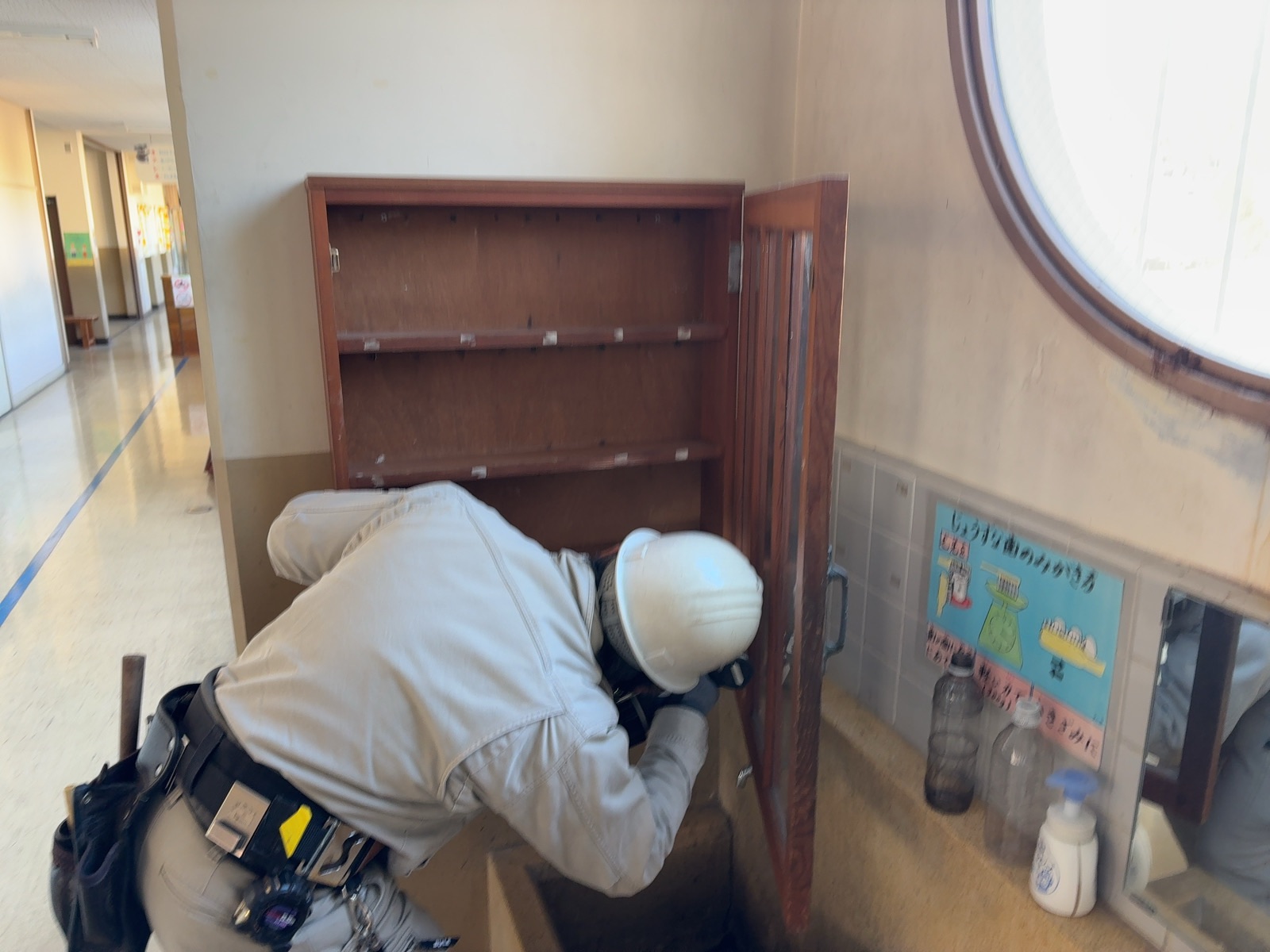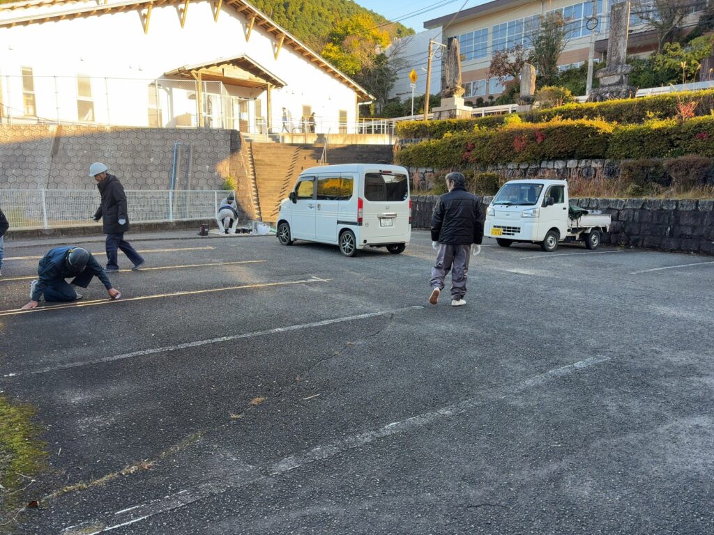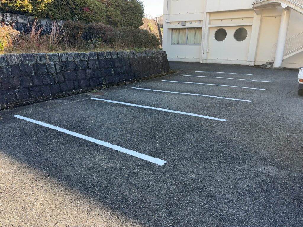 壁の収納棚の撤去、便器の水栓金具取り替え、駐車場のラインペンキ塗りなどをしました。