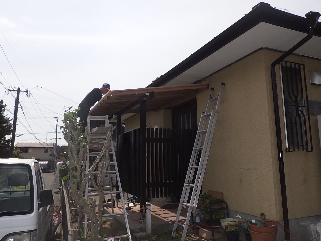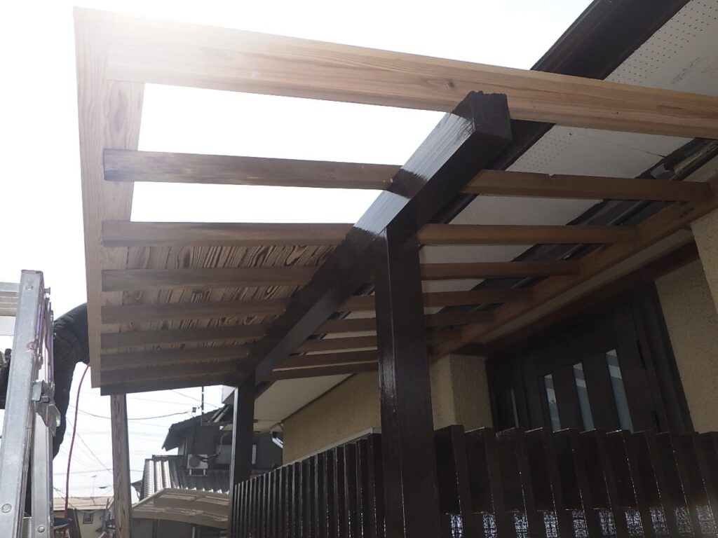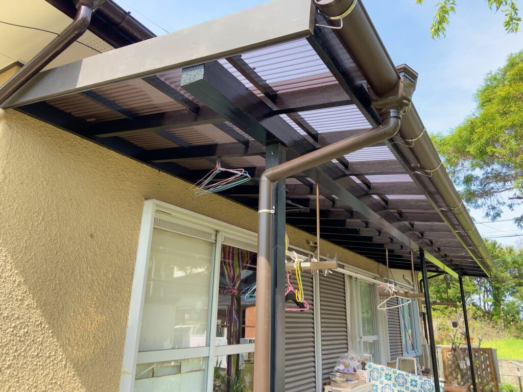 玄関屋根、テラス屋根を新しくしました。撤去して新しく取付けしました。 リフォーム 2026.04.04 玄関屋根、テラス屋根を新しくしました。 玄関屋根は木仕上げが腐れてきてました。 撤去して新しく取付けしました。 これで安心です! #屋根張替え