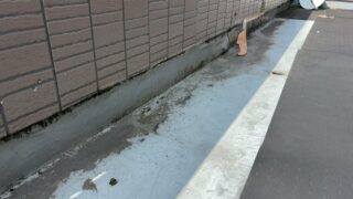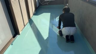 施工中進捗状況 ベランダ雨もれの相談をしてもらいました。床下地をモルタル補修して防水塗りをしました。