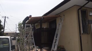 玄関屋根、テラス屋根を新しくしました。 玄関屋根は木仕上げが腐れてきてました。 撤去して新しく取付けしました。 これで安心です! #屋根張替え